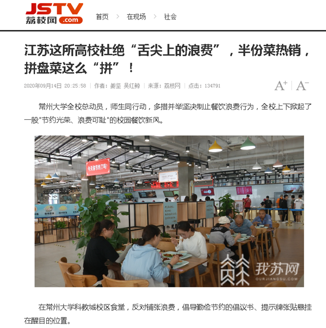 常州大学全校总动员,师生同行动,多措并举坚决制止餐饮浪费行为,全校上下掀起了一股节约光荣、浪费可耻的校园餐饮新风。